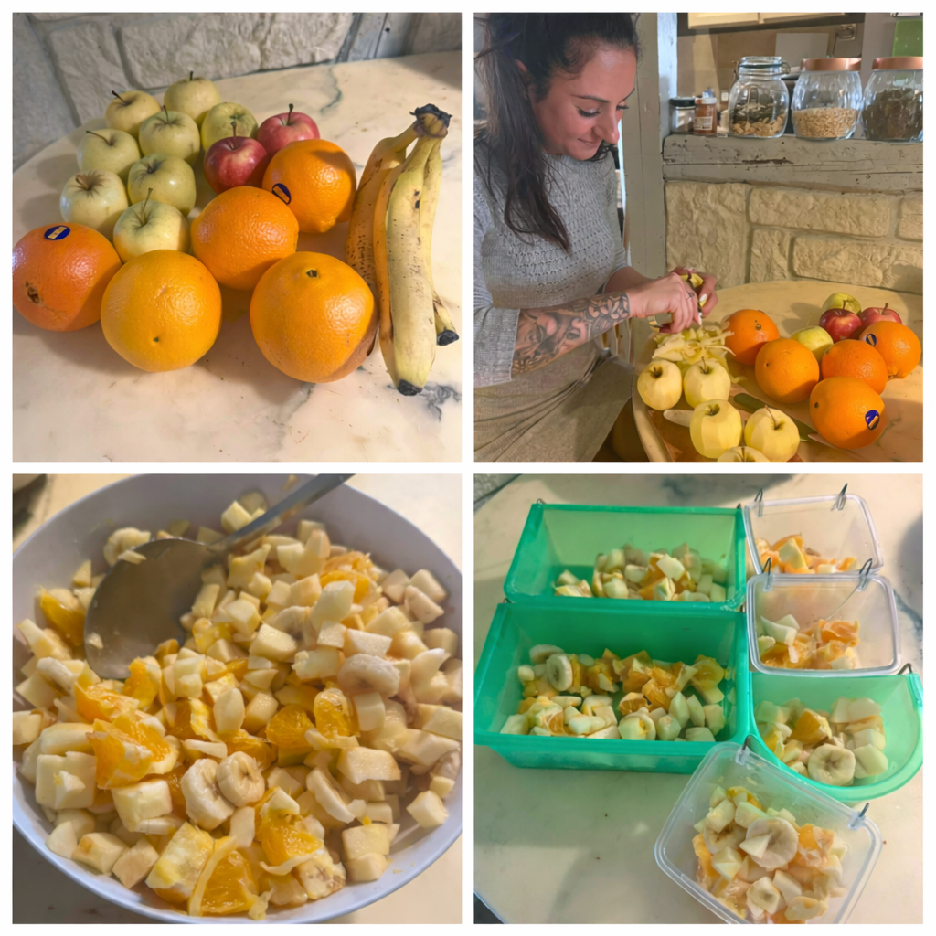 Les perroquets ont besoin d’une alimentation variée et riche en fruits frais. Chaque jour, nous préparons leurs repas avec soin : épluchage, découpe et préparation de fruits comme la pomme, l’orange ou la banane… un vrai festin pour eux !